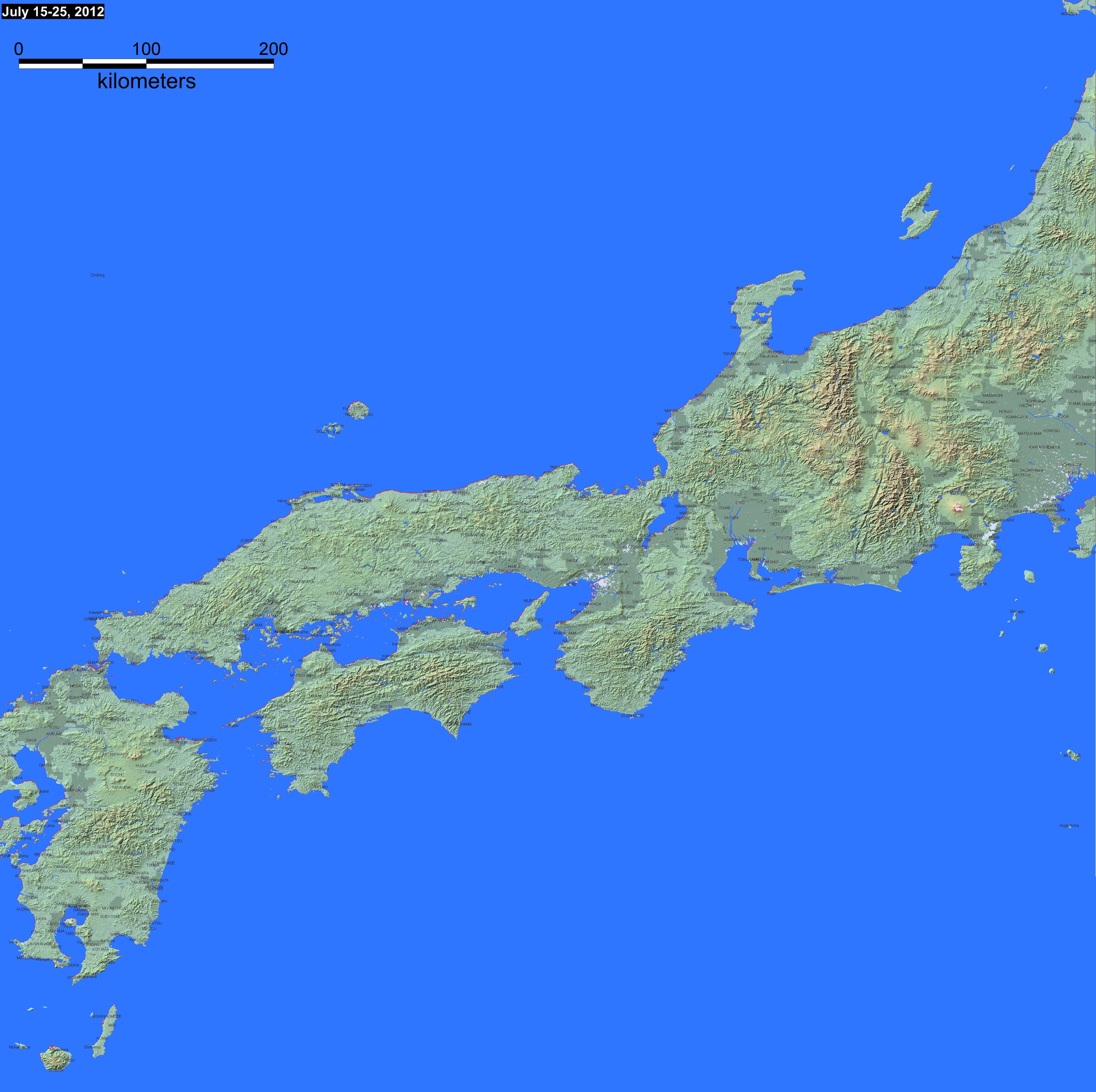 Other information: See also the FAQ. Clickable black dots on these displays link to satellite river measurement sites. The shaded relief background is from topography provided by NASA SRTM data. For the most recent MODIS-based surface water available, see the NASA NRT Experimental Flood Maps. Recent GIS data (daily surface water information) from the automated MODIS-LANCE NRT processor are located at http://csdms.colorado.edu/pub/flood_observatory/MODISlance/ . GIS data (MapInfo format) of the long term record of flooding are also available: at this location. Finally, see the technical description, and the history of display updates via powerpoint slides.